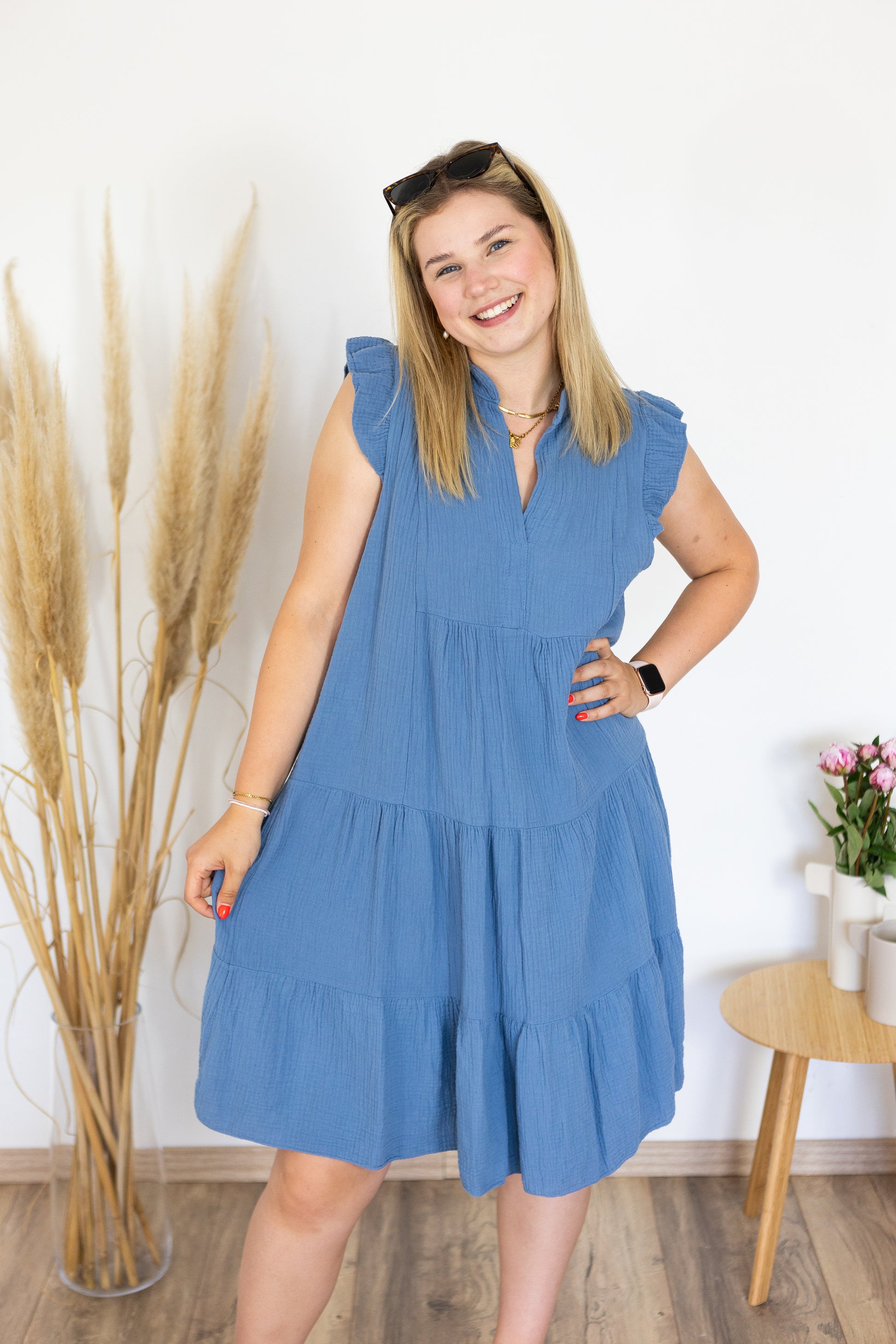 Musselinkleid "Vani" blau