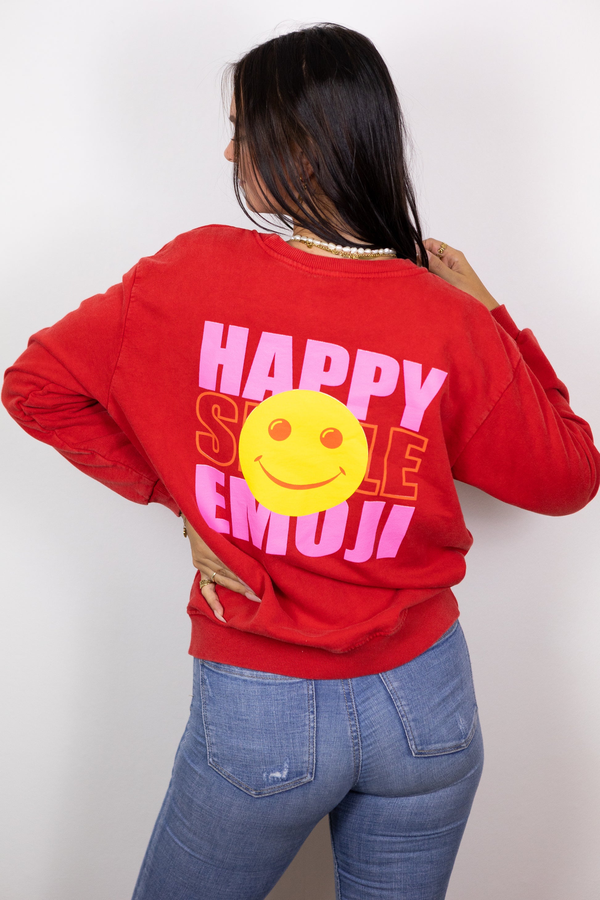 Neon-Prints uns Smileys - beide Trends vereint mit dem lässigen Schnitt unseres Sweatshirts “Happy” machen nicht nur Dir jeden Tag gute Laune. Der großflächige Backprint in Neonfarben macht schon jetzt Lust auf Frühling und verleiht Deinem Kleiderschrank den lang ersehnten Farbtupfer.